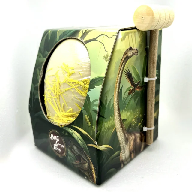 این بسته شامل یک عدد تخم دایناسور و چکش چوبی است. کودکان با چکش به تخم ضربه می زنند و پس از شکستن پوسته، فیگور دایناسورها را خارج می کنند.